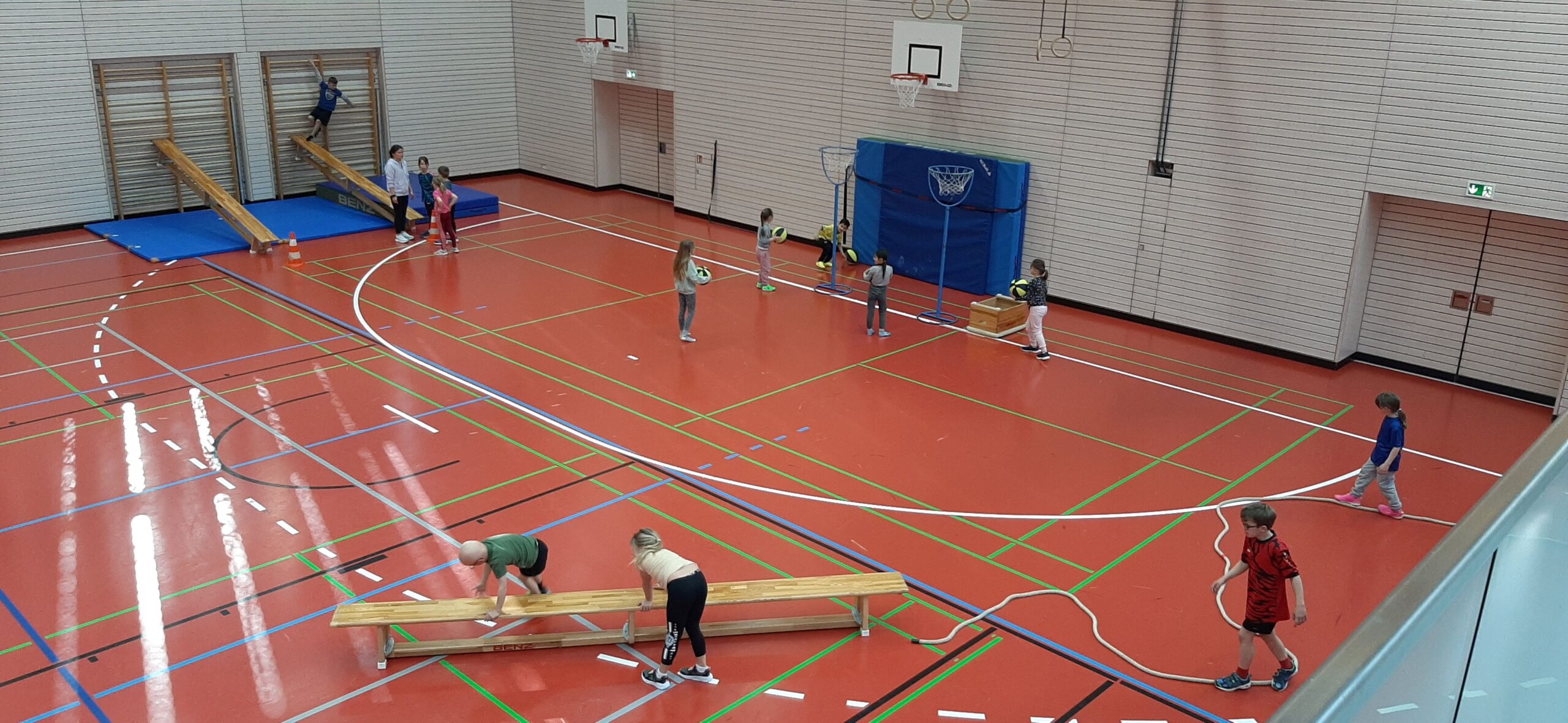 Gemeinsam mit der Klasse 1a und der Klasse 2a erlebten die Kinder zwei abwechslungsreiche und sportliche Stunden in der Turnhalle. An verschiedenen Stationen konnten die Vorschülerinnen und Vorschüler spielerisch aktiv werden, ihre Beweglichkeit erproben und erste Eindrücke vom Schulalltag gewinnen.